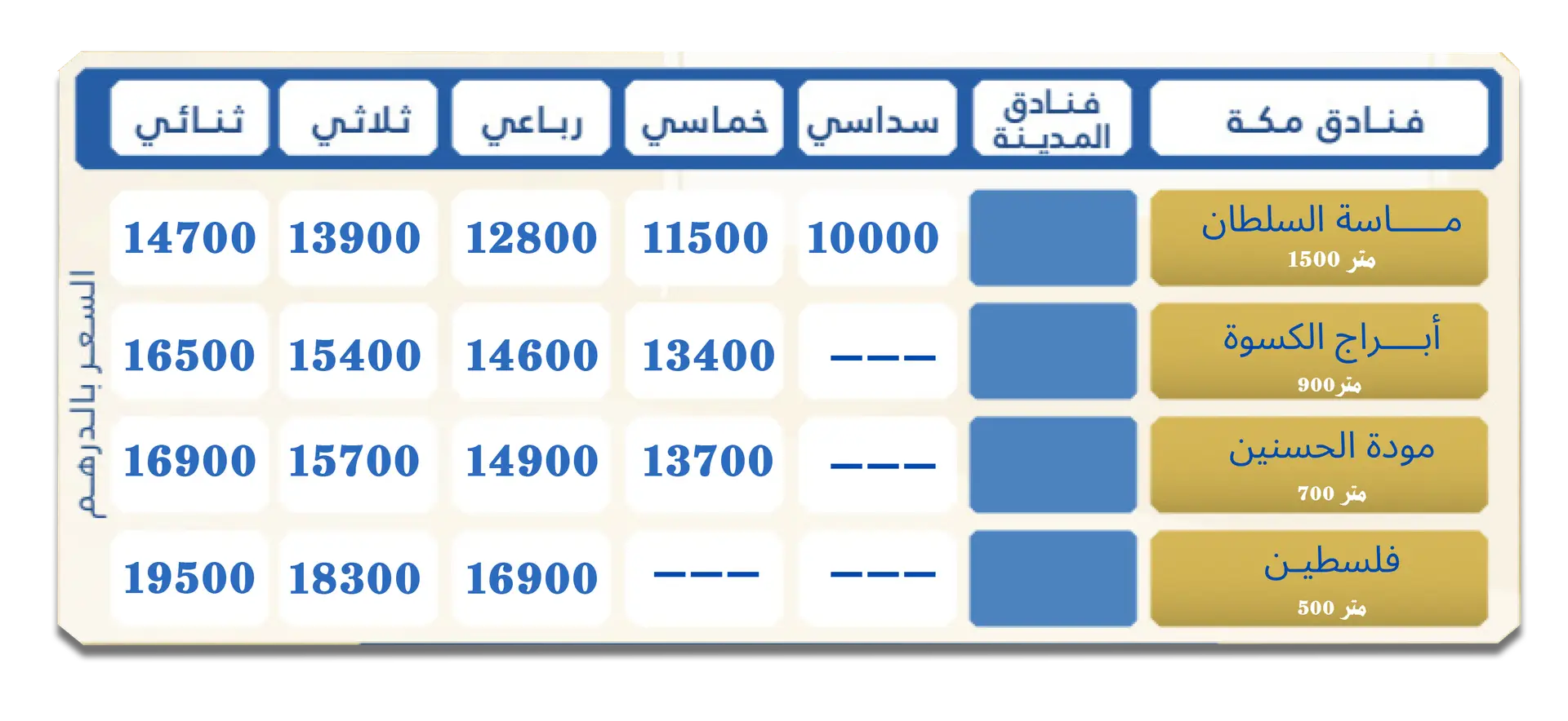نوفر فنادق مريحة وقريبة من الحرم، تم اختيارها بعناية لضمان سهولة التنقل والراحة.